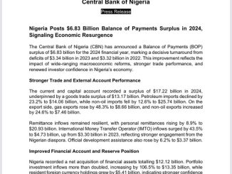 The Central Bank of Nigeria (@cenbank ) has announced a Balance of Payments (BOP) surplus of $6.83 billion for the 2024 financial year, marking a […]