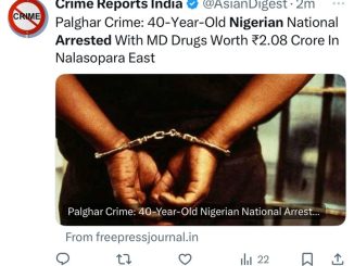In a major anti-narcotics operation, Tulinj Police in Nalasopara East seized over one kilogram of the banned drug Methylenedioxy-methamphetamine (MD), commonly known as meth, valued […]