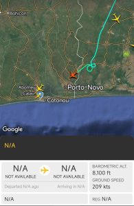 An unknown tactical aircraft is also entering Cotonou airspace coming Abidjan, currently five military aircrafts are operating above Cotonou, Benin.