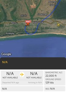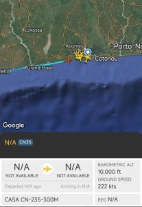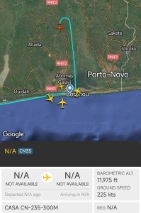 An unknown tactical aircraft is also entering Cotonou airspace coming Abidjan, currently five military aircrafts are operating above Cotonou, Benin.