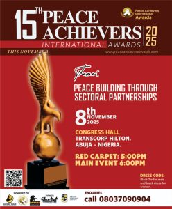 With the theme, Peace Building Through Sectoral Partnerships: Public and Private Sector Collaboration, the event will hold November 8, 2025 at Transcorp Hilton Hotel Abuja.