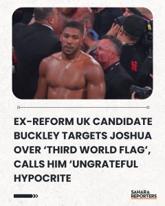 Ex-Reform UK Candidate Buckley Targets British-Nigerian Anthony Joshua Over ‘Third World Flag’, Calls Him ‘Ungrateful Hypocrite’