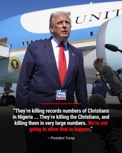 DOUBLING DOWN: President Trump again condemns the killing of Christians in Nigeria, telling reporters, “we’re not going to allow that to happen.”
