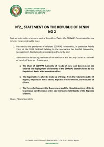 URGENT ECOWAS STATEMENT N°2 ON BÉNIN.
