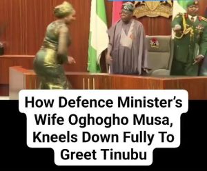 Gen. Musa’s Wife, Oghogho Kneels Before Tinubu In Deep Appreciation (Video) December 5, 2025 Naijaanswers E-News, News 0 Viral Moment: Gen. Musa’s Wife Kneels Before Tinubu in Deep Appreciation Click here to see more post about 👇 Gen. Musa’s WifeOghogho Kneels Before Tinubu In Deep Appreciation (Video) PreviousWhy We Can’t Track Terrorists Showing Off Ransom On Tiktok, Facebook – Bwala (Video) NextAccord Party Faction Moves To Halt Osun Governorship Primaries Be the first to comment Leave a Reply Cancel replyYour email address will not be published.CommentName * Save my name, email, and website in this browser for the next time I comment. Δ