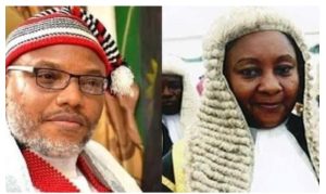 The IPOB leader’s legal team stated that Justice Nyako cannot review, reopen or revisit the matter of her recusal because she no longer possesses the jurisdiction and she has become functus officio.
