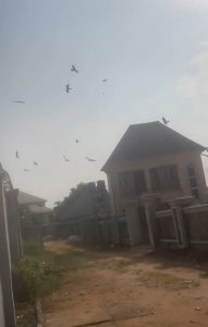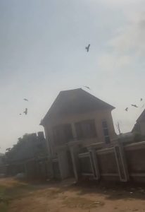 A Nigerian lady has raised alarm after spotting more than 200 eagles hovering over a neighbour’s house. What makes the situation even more unusual is that the birds gathered only above one specific roof — a smaller building within the compound — ignoring all the other structures.