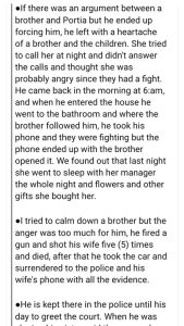 Out of anger the husband shot her 5 times and got into the car and handed himself to the cops along with the phone that contained all the evidence.