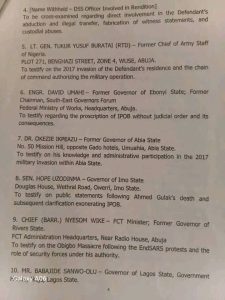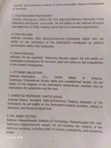 Sources close to the development reveal that the listed witnesses will help expose how government officials and security agencies handled IPOB matters and the !njustices done to the people of the Southeast.