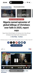 Nigeria “Epicenter Of Global Killings Of Christians Over Faith In 2025” – Open Doors
