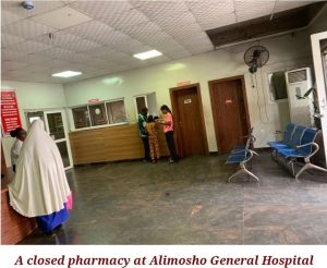 At Alimosho General Hospital, pharmacies and laboratories were shut. Patients were directed outside the hospital to purchase drugs. “For over one month now, I have been buying my drugs outside,” said Mummy David, an elderly patient.