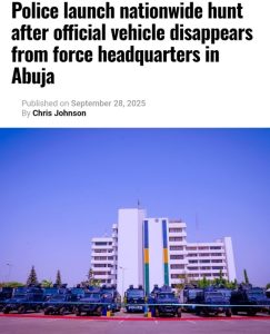 “Grateful be informed that Sig. No. CR:3000/FDPS/FHQS/Abj/Vol.2/189 DTO: 271231/08/2025 received from Nigpol Dops Abuja that a police official’s vehicle, a Toyota Land Cruiser, was involved in an accident. JTELU71JX0B027126, Rec No. NPF 5594 D, attached to Department of Operations FHQ, Abuja was declared missing/stolen or removed from where parked on 28/07/2025 from parking lot of FHQ, Louis Edet House Abuja,” the police message said.