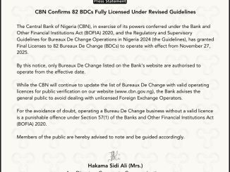 CBN Confirms 82 BDCs Fully Licensed Under Revised Guidelines. #CBN https://x.com/cenbank/status/1998097977718800855?t=zVM2toZ3vr6GJ3yqz2zyXw&s=19 2 Likes Share