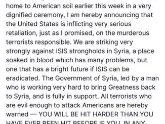 Because of ISIS’s vicious killing of brave American Patriots in Syria, whose beautiful souls I welcomed home to American soil earlier this week in a […]